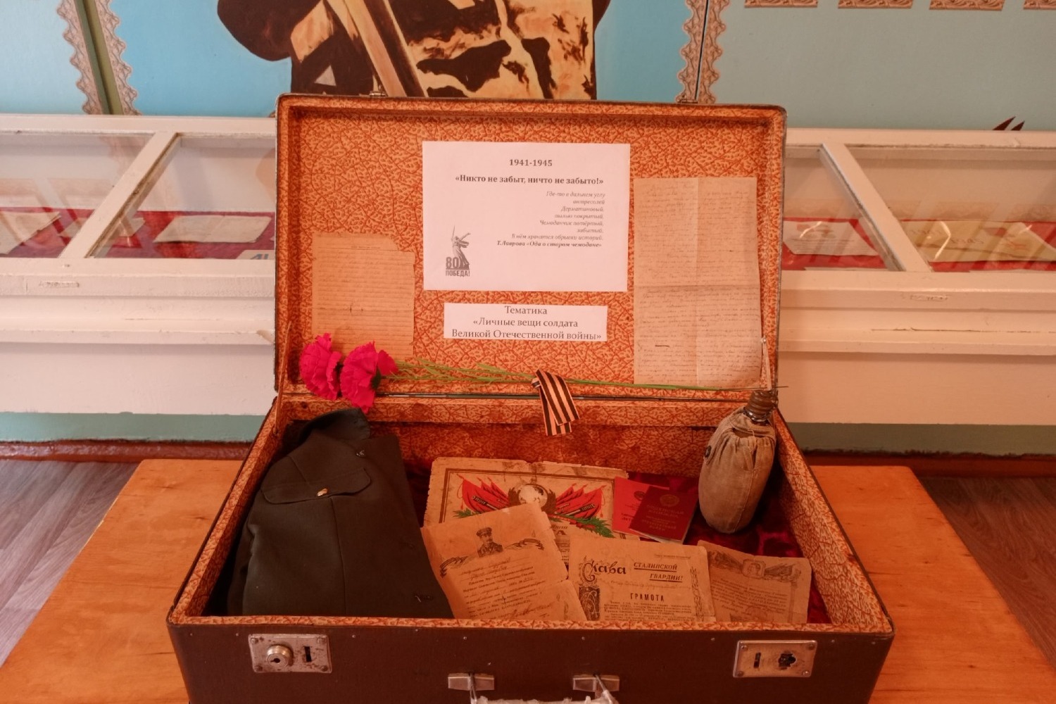 «Музей в чемодане» представляет собой компактную экспозицию по теме «Личные вещи солдата Великой Отечественной войны».